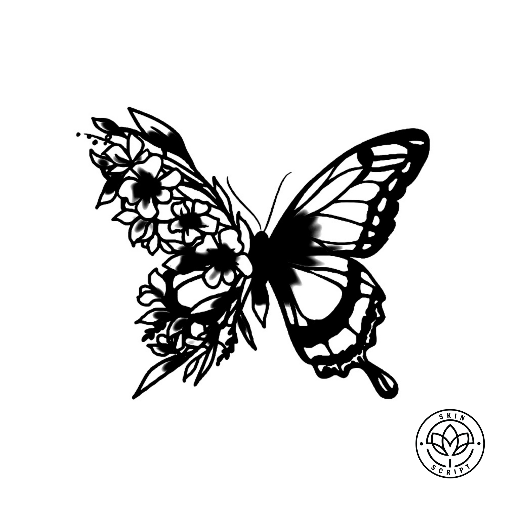 A unique fusion of a butterfly and blooming flowers, this tattoo represents freedom, transformation, and the beauty of life’s journey. The intricate details of the wings and petals make it a captivating choice for the shoulder blade, forearm, or calf, inspiring a sense of wonder and renewal.