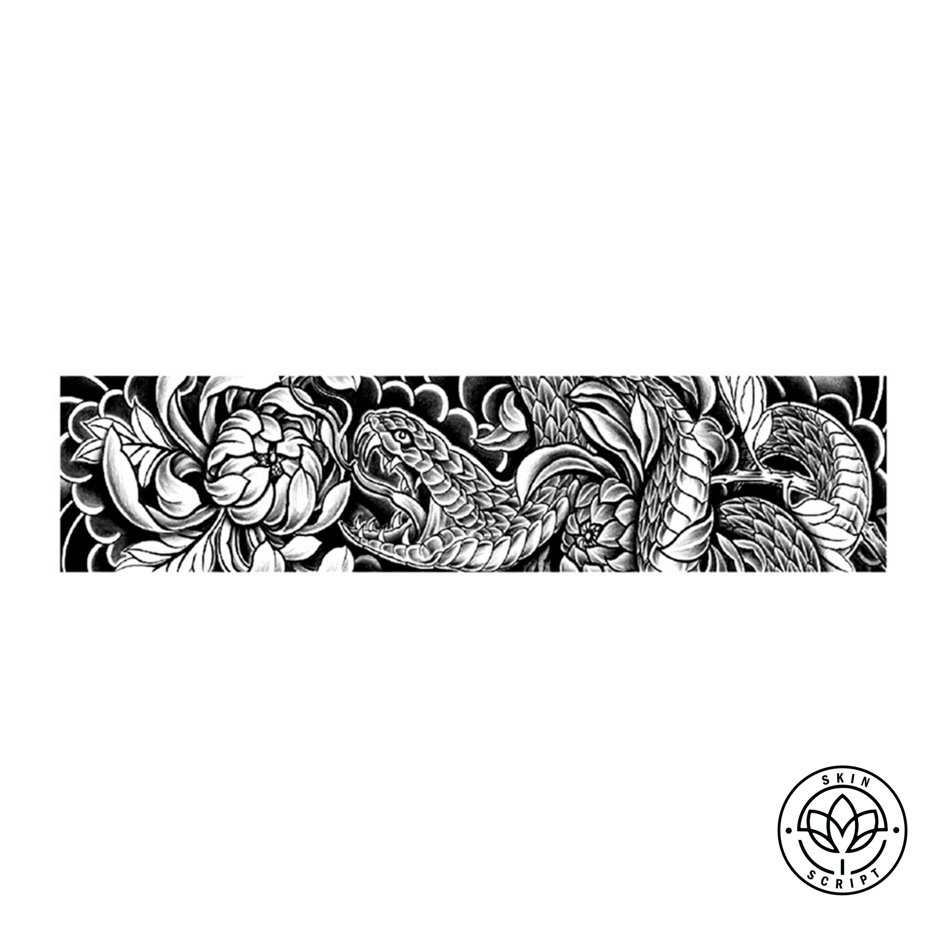 Inspired by traditional Japanese Irezumi, the meticulous detailing of the scales and petals creates a dynamic contrast between danger and elegance. The intricate shading and high-contrast composition emphasize depth, movement, and intensity, making this design a perfect balance between aggression and grace.
